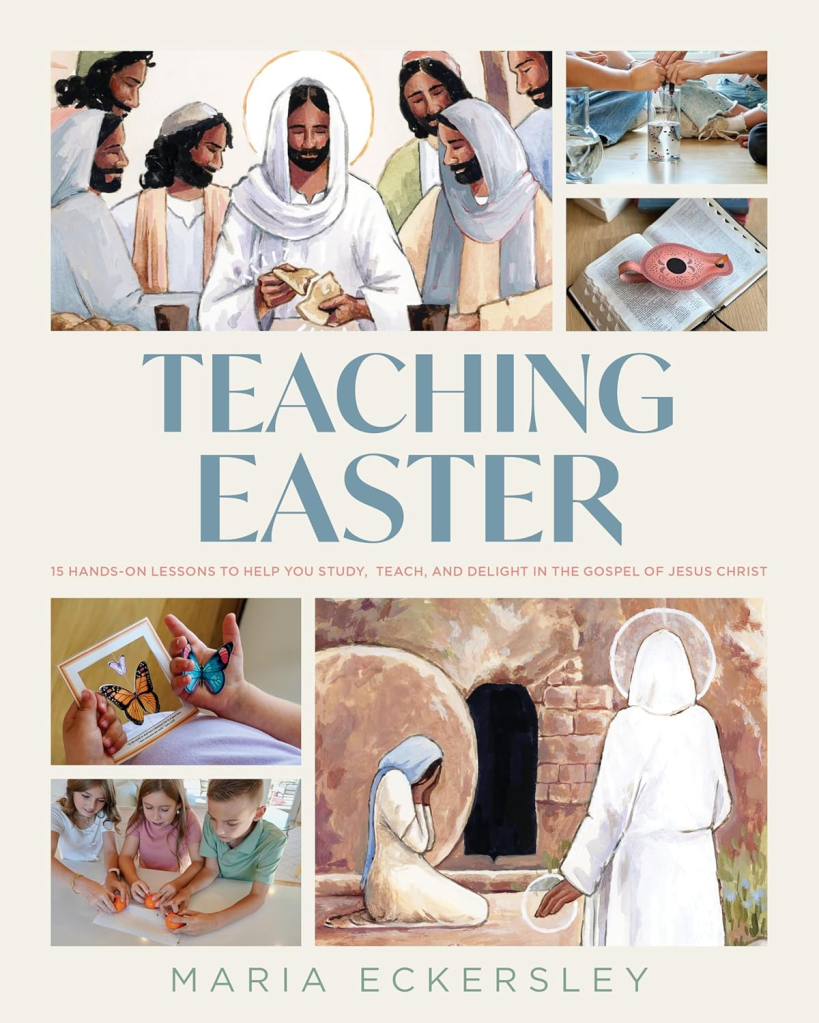 If you want even MORE ideas, check out Maria’s NEW book below. The only thing from above that is repeated in the book is the making paper lilies activity and the oil lamp craft. I’ll be poring over the book and the ideas above to see how we are going to fit a few of these activities in over the next two weeks, along with the ones from Emily Belle Freeman over here. I want to do the Easter lily activity on Emily’s Day #5, Good Friday, since she mentions using lilies on that day.