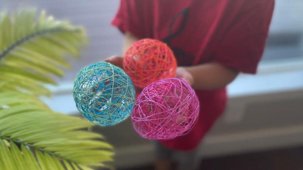 Sister E explains that we didn’t get to see the Savior and His life firsthand. We do have His form, though, or His example and His words, in the scriptures. This is just like with these string eggs. After the balloons are gone, we don’t see them. But we have the form, made after the real thing. She says you take embroidery floss and separate it into strings, coat the strings with a glue/water mixture, and wrap it around the water balloon. Then you let the eggs dry overnight. You then pop the water balloon inside and take it out. What you have left is an amazing, perfect egg made out of string.