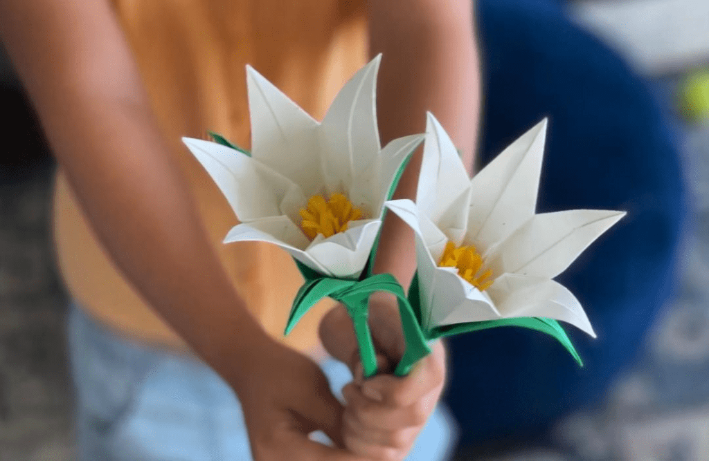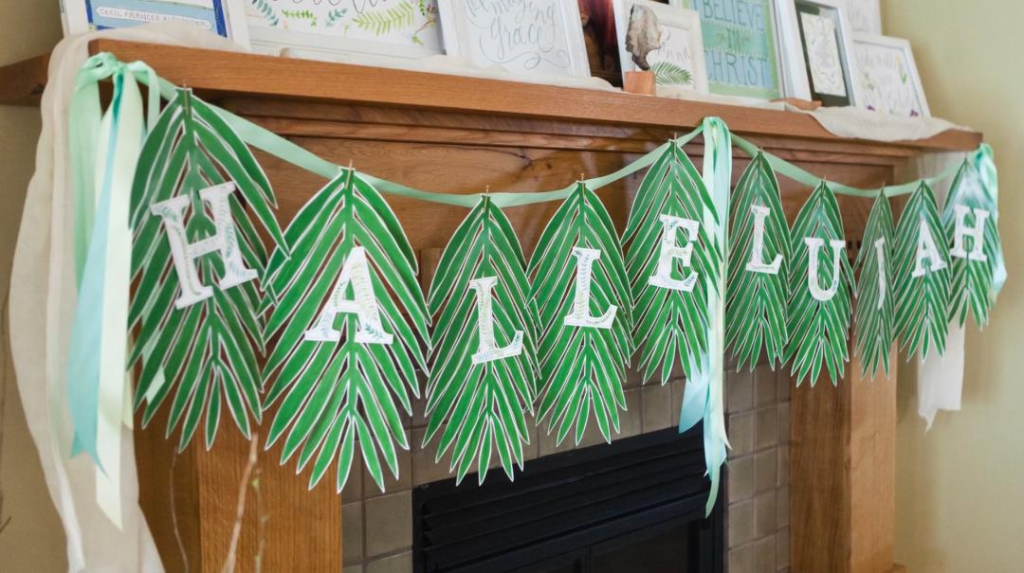 4. Christ-centered Easter decorations, like a Hallelujah banner (seen at the top of this post), or these Easter lilies., with scriptures about Jesus printed on the inside of the petals. Maria suggests setting apart a day to this, and playing Easter music as you decorate, similar to when you set aside a day and decorate for Christmas.
