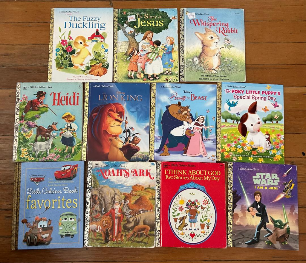 If I were doing an Easter basket for younger children, I’d find some kind of faith-in-God/Jesus-promoting/Easter picture book, or some other classic picture book that shows a Hero Quest. All the books below I have found thrifting for 50 cents to $2.