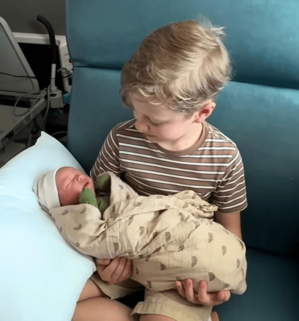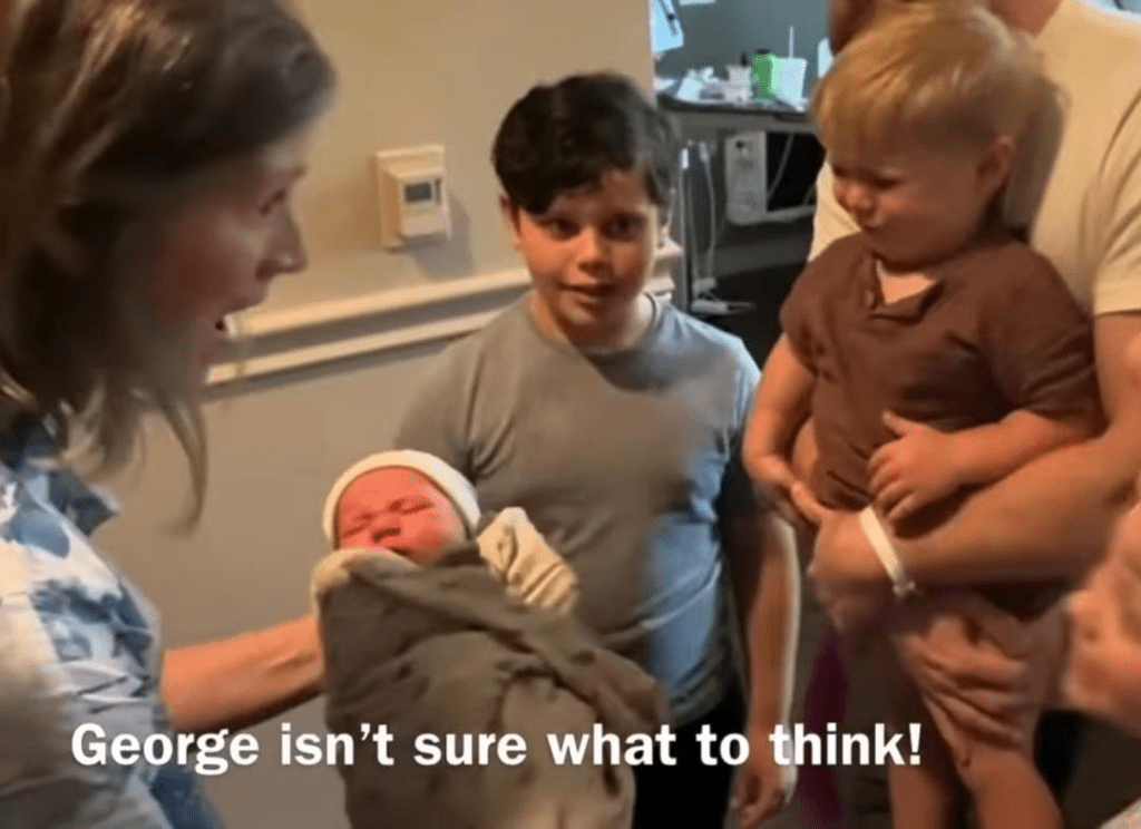 Here are a few screenshots from the video. Above, Jessa’s other children enter Jessa’s hospital room and Grandma Seewald is holding the baby. Big brother Henry asks the gender. Grandma S tells says that Mom and Dad will tell them.